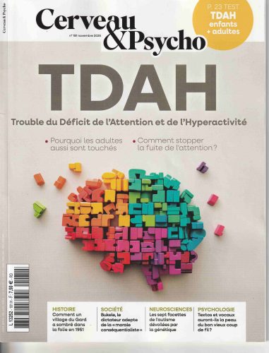- « TDAH : pourquoi les adultes aussi sont touchés ». Un long article qui associe description clinique, neurosciences (modification des connexions entre cortex frontal* et striatum* et du fonctionnement du réseau du mode par défaut*), génétique, etc. mais indique également des prises en charge pour mieux vivre avec le trouble.